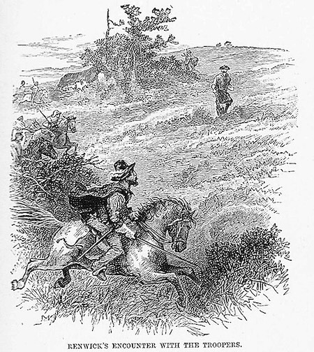 [ABOVE: Renwick's encounter with the troopers—J. Meldrum Dryerre's Heroes and Heroines of the Scottish Covenanters; London: Partridge & Co., 1901. public domain, Wikimedia.]