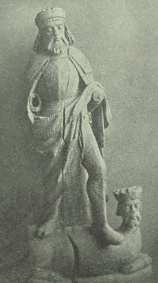 [ABOVE: St. Olaf, 15th-c wooden figure originally in Fjeld Church, Sønhordland—Thomas B. Willson, History of the Church and State in Norway, from the Tenth to the Sixteenth Century. Westminster: Archibald Constable & Co., 1903. Public domain]
