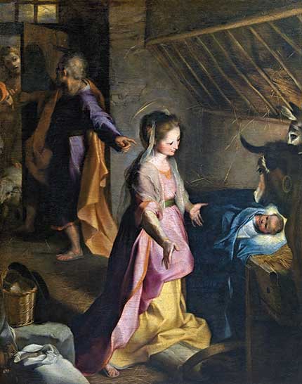 [ABOVE Federico Barocci, Nativity, 1597. Oil on canvas—Prado Museum / Public domain, Wikimedia]