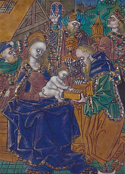[ABOVE: Master of the Orléans Triptych, Triptych: Circumcision, Epiphany, Nativity, c. 1490. Enamel and Copper, France—Indianapolis Museum of Art / Public domain, Wikimedia]