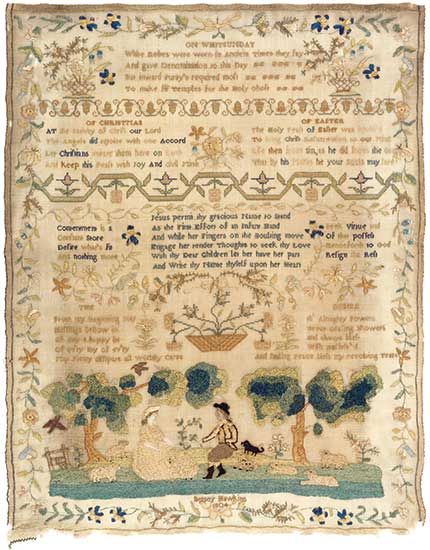 [ABOVE: Sampler of Liturgical Verses, 1804. Silk embroidery on wool. English—Public domain, Cooper Hewitt, Smithsonian Design Museum Collection Textiles Department]