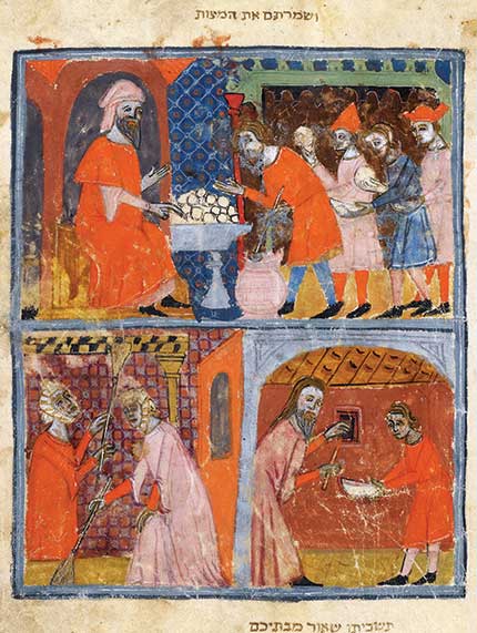 [ABOVE: Preparation for the Passover in Haggadah Pesach, Sister Haggadah, Or. 2884, f.17. Catalonia, mid 14th century—From the British Library archive / Bridgeman Images]